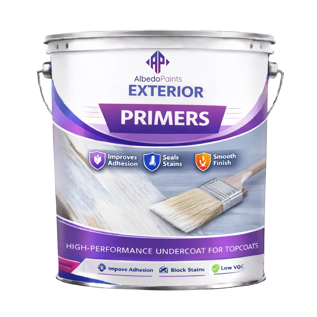Albedo Paints’ Exterior Primers are specially formulated to prepare outdoor wall surfaces for long-lasting decorative and protective coatings. By improving adhesion, sealing porous substrates, and strengthening weak surfaces, these primers help exterior paints perform better and last longer under harsh weather conditions.